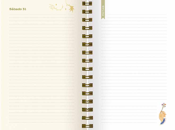 FICHA TÉCNICA Páginas: Un día por página 440 páginas páginas Formato: 15,5 x 22 cm Tipo de tapa: Encuadernación: espiral wire-o/ Tapa con stamping