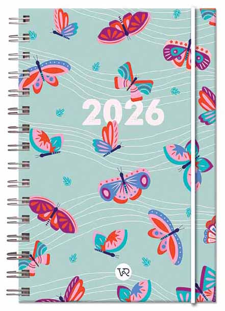 FICHA TÉCNICA Páginas: Semana a la vista - 160 páginas/ Incluye stickers páginas Formato: 14,5 x 19,5 cm Tipo de tapa: Encuadernación: espiral wire-o/ Tapa con laca sectorizada (mariposas)